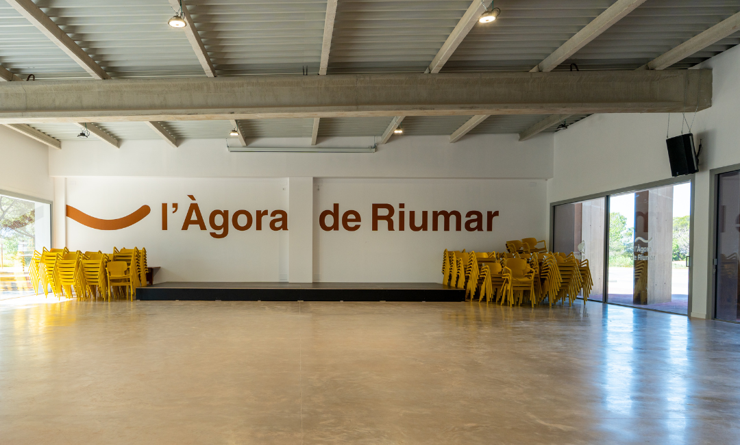 Ubicado en el corazón del Delta de l’Ebre, l’Àgora de Riumar es un equipamiento público concebido como punto de encuentro social y cultural tanto para residentes como para visitantes. Su arquitectura moderna y su fuerte conexión con el entorno natural lo convierten en un escenario perfecto para un proyecto de identidad visual integral basado en pintura, rotulación y diseño gráfico.