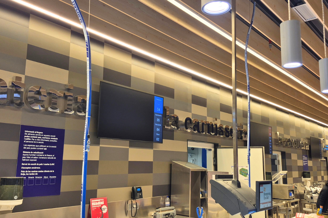 - Tótems informativos y plafones personalizados para cada zona del supermercado.