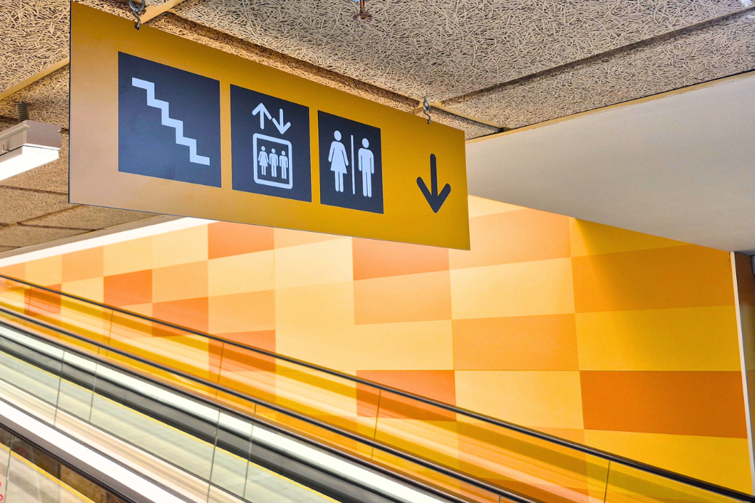 - Objetivo del proyecto: Desarrollar una solución integral de señalización adaptada a la identidad visual del cliente, garantizando una integración funcional y estética de cada elemento gráfico según la distribución del espacio y los recorridos del usuario dentro del centro.